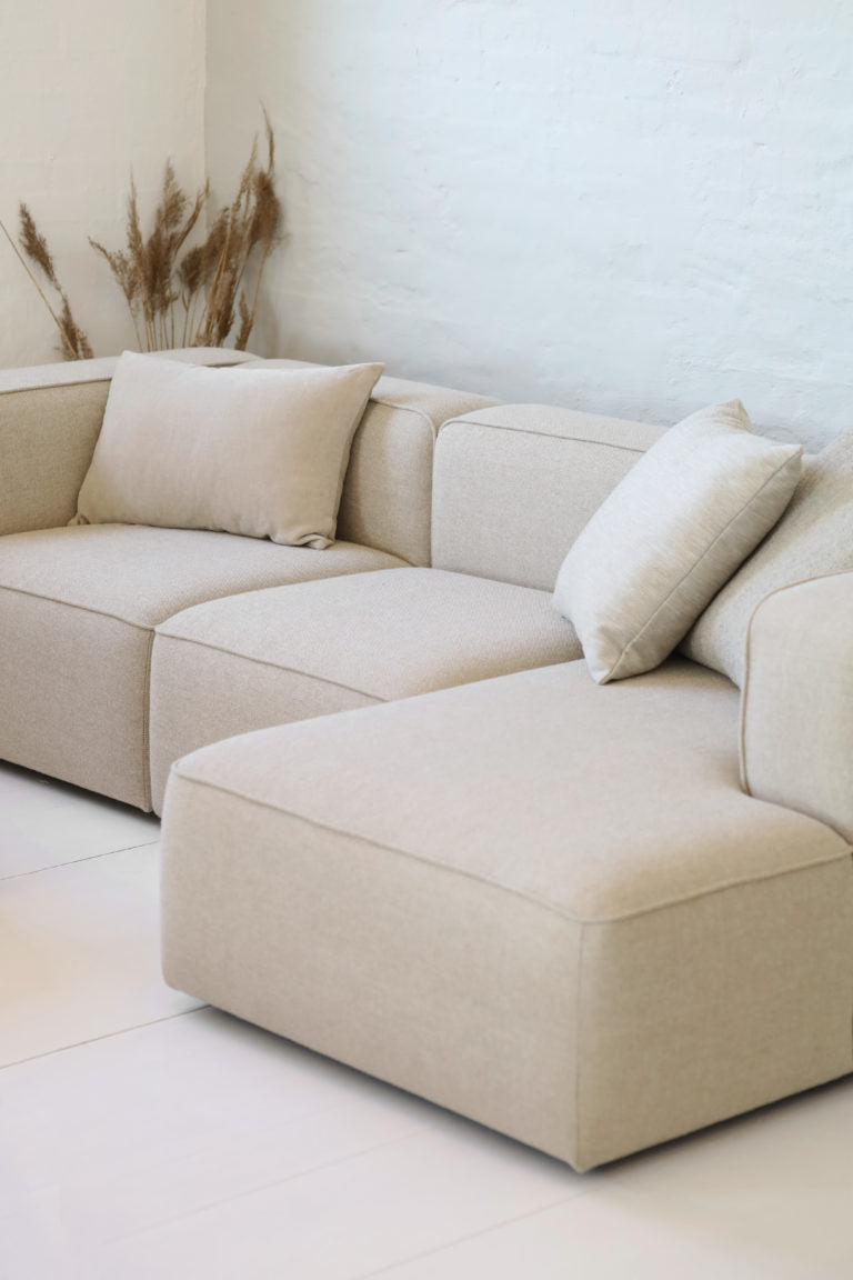 Den beige sofa komplimenterer alle aspekter af skandinavisk indretning. Naturen er nemlig en stor del af den nordiske stil, som ses ved den hyppige brug af møbler i naturmaterialer som egetræ, hørflet, uldpolstring. Den beige nuance går hånd i hånd med naturlige materialer, og giver rummet en varme og lys.