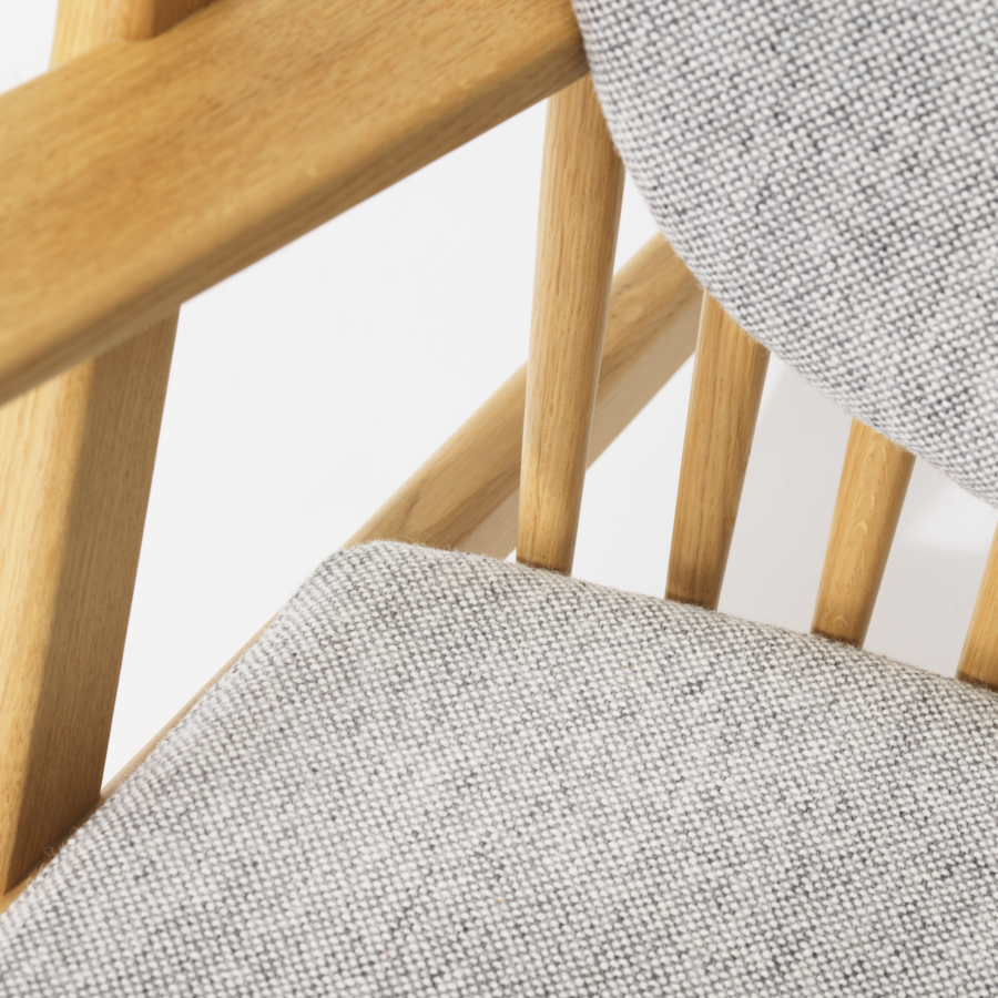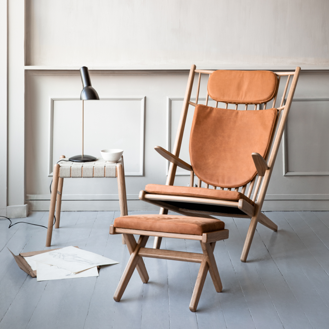 GOLIAT lænestolen håndlaves af danske leverandører i certificerede materialer. Dette møbel er også håndlaves af egetræ fra FSC®-certificerede skove (FSC® N002763). Dette betyder, at det tages hensyn til naturen, mennesker og dyr i produktionen.