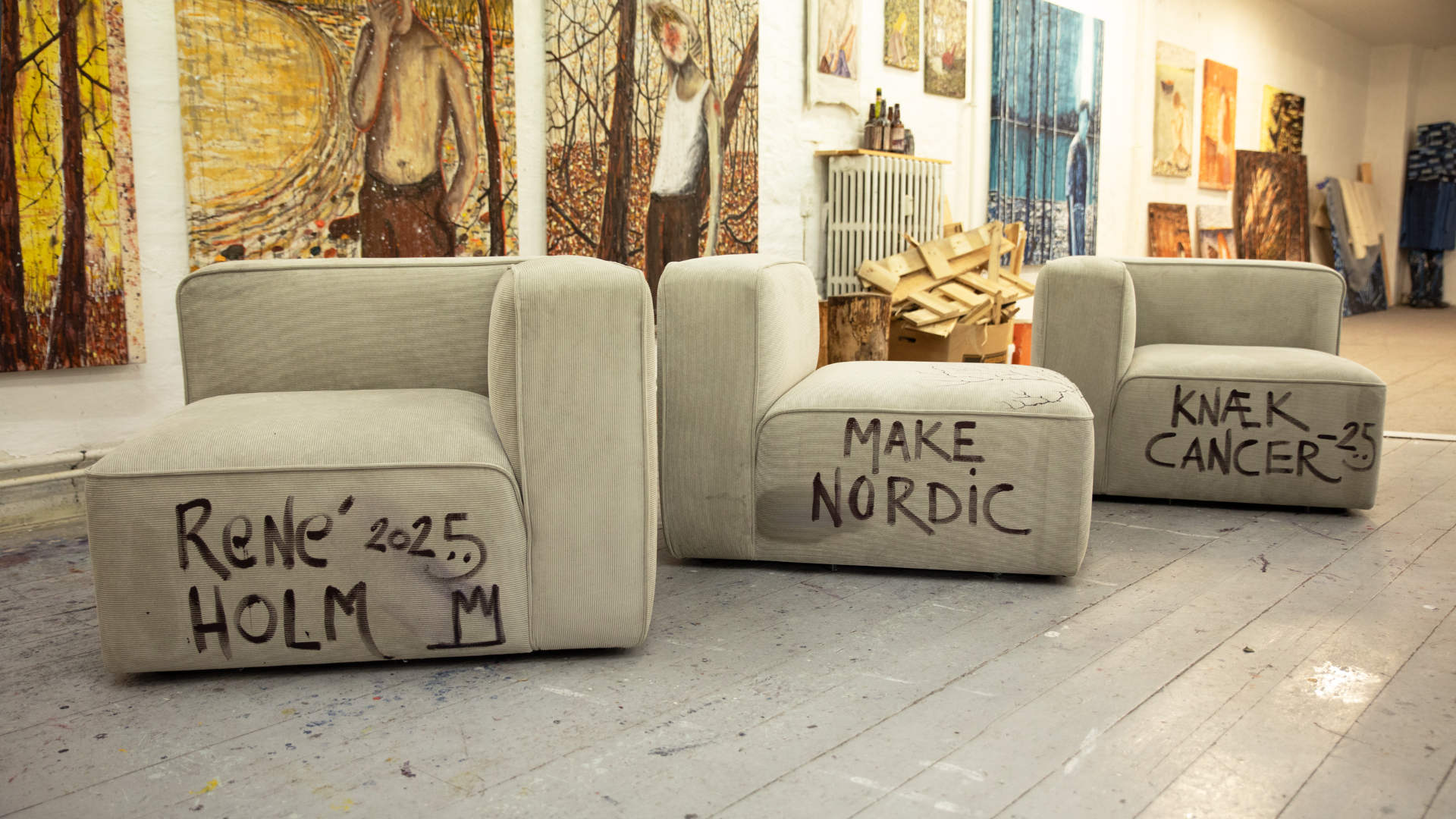 To stærke kræfter fra den danske kunst- og designscene forenes i kampen mod kræft, når den anerkendte kunstner René Holm og møbel brandet MAKE nordic sammen skaber et helt unikt værk – en 3-personers sofa forvandlet til levende sofakunst.