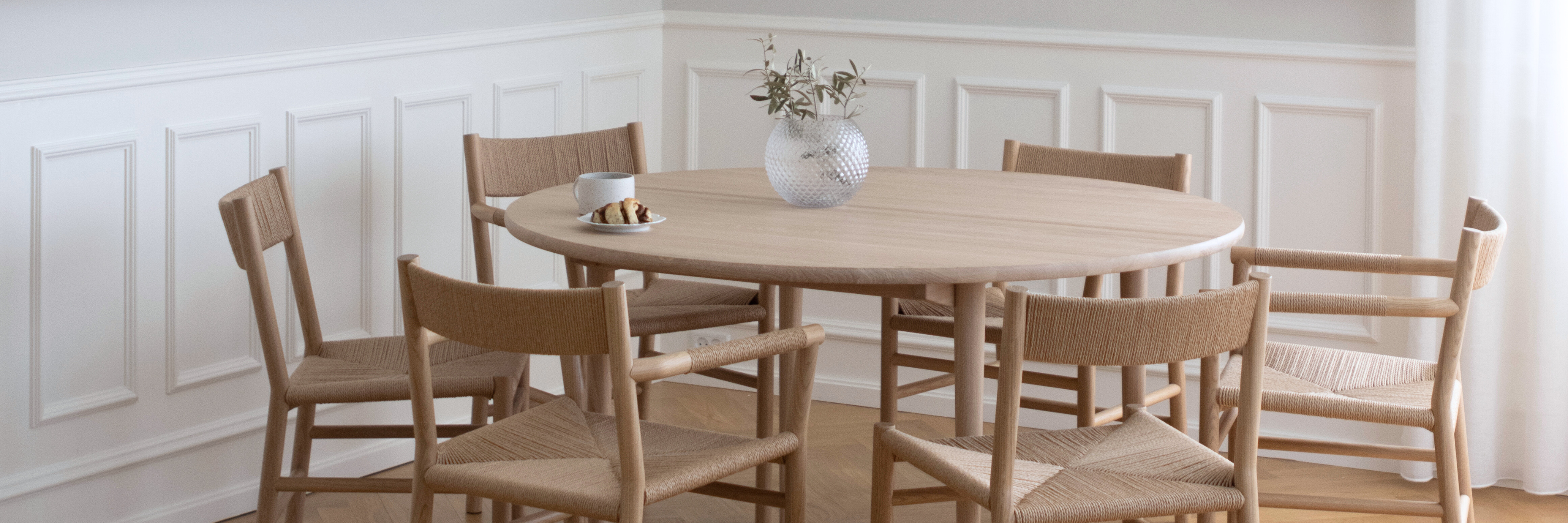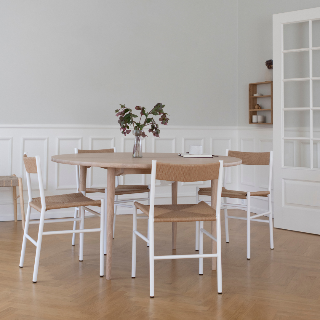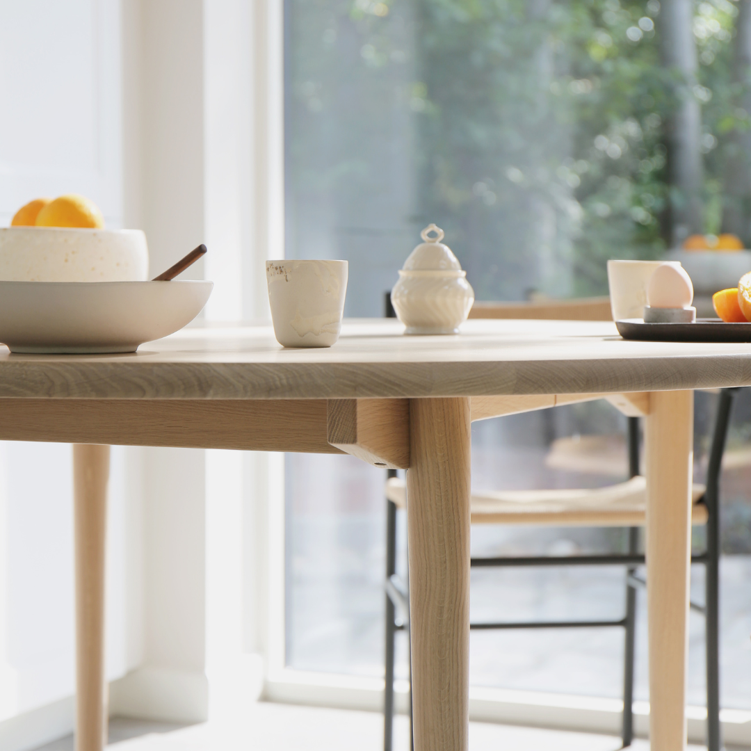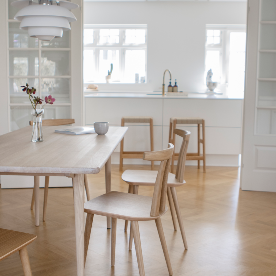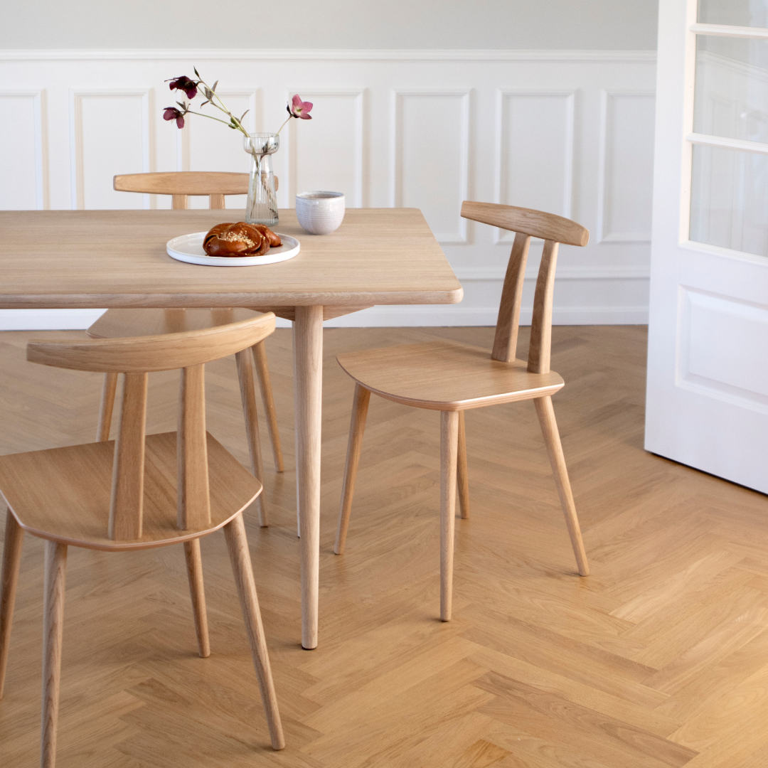 Hos MAKE nordic finder du arkitekttegnede møbler fremstillet i FSC®-certificeret egetræ til din spisestue. Kombinationen af de certificerede kvalitetsmaterialer og det tidløse design gør, at vores møbler kan gå i arv til generationer. Alle møbler til spisestuen håndlaves i Danmark eller Eu.