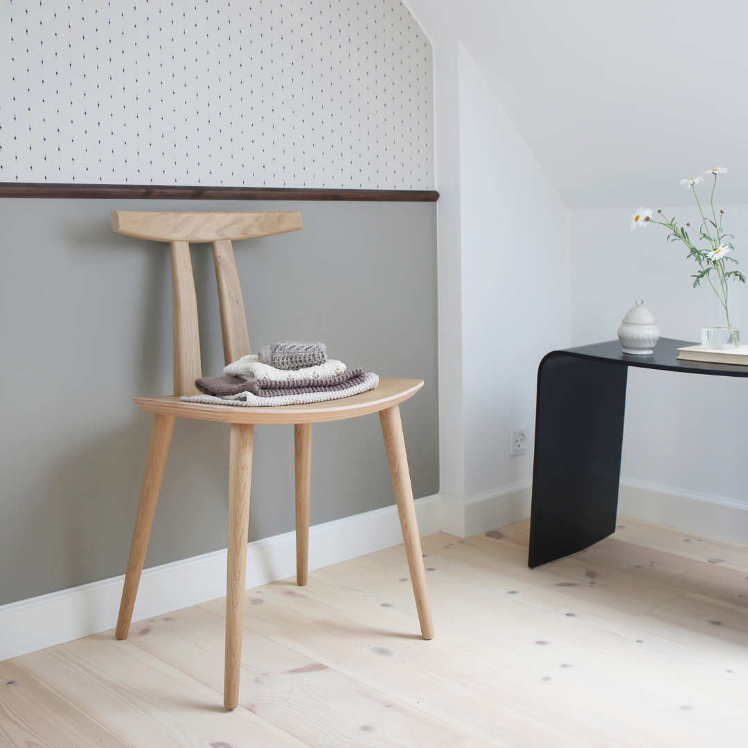 MAKE nordic’s relancerede version af Volthers J111 er lavet i massivt egetræ, som er træ fra FSC®-certificerede skove (FSC® N002763) med en naturlig, mat lak eller en sort lak.