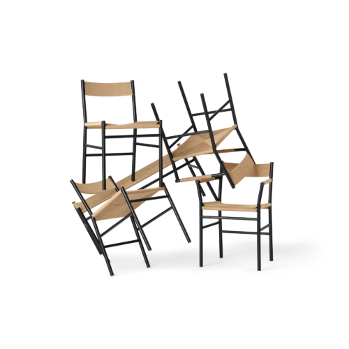 Møblerne fremstilles i genanvendeligt, pulverlakeret stål. Stolens ryg, sæde og armlæn håndflettes på klassisk vis med papirflet. Når møblerne engang om mange år skal kasseres, kan flet og stål let adskilles, så det kan sorteres og genanvendes.