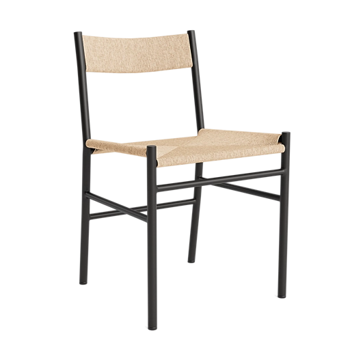 Du kan vælge stolen med og uden armlæn, hvilket giver dig mange muligheder i din indretning. CORD er den perfekte spisebordsstol, men den er også meget anvendelig på kontoret, i entréen og i soveværelset. Vælger du at bruge den ved spisebordet, kan du med fordel kombinere stole med og uden armlæn for at skabe et varieret udtryk. Det smukke lyse flet og stålstellets sorte kontrast giver dig en stol, der passer ind de fleste steder.
