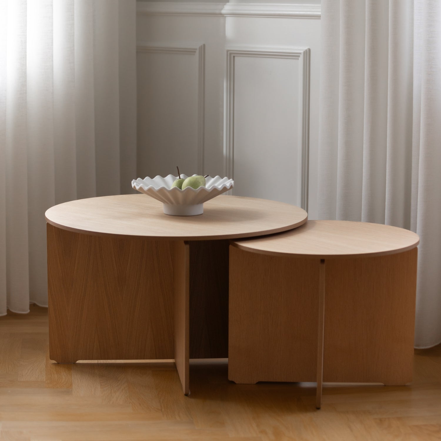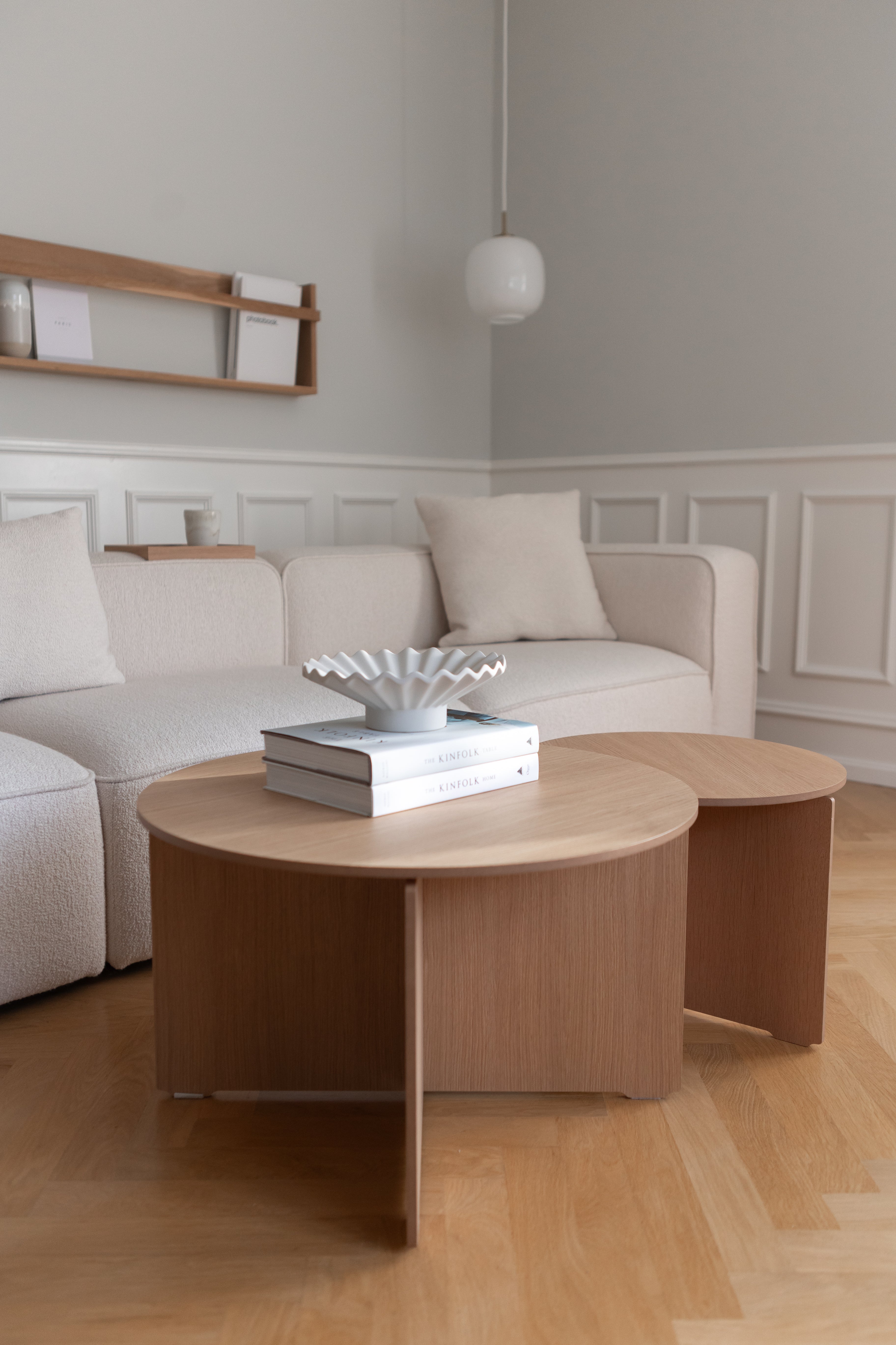 Egetræsfinér har den smukke glød, du kender og holder af, fordi det matcher den nordiske stil helt perfekt. Egetræet stammer fra Nordtyskland, og bordene produceres på en dansk møbelfabrik i Nordjylland. Finér er et meget stærkt materiale, der behandles med vandbaseret lak, så overfladen bliver ekstra modstandsdygtig og er let at holde.