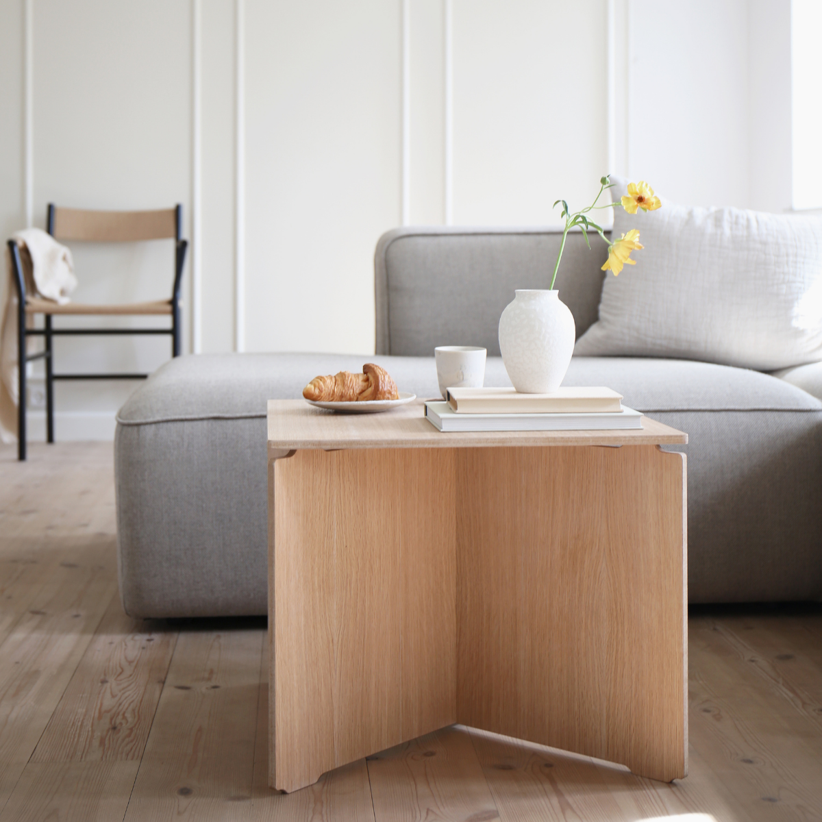 CROSS bordet passer med sit enkle udtryk ind i de fleste nordiske hjem. Det alsidige møbel kan anvendes ved sofaen som et eller flere sofaborde eller sideborde. Det er også perfekt som et sengebord, en lille skammel i entréen eller som en skulpturel afsætningsplads på badeværelset eller i omklædningsrummet. Vælger du at bruge CROSS sammen med din modulsofa, kan bordets ene kant skubbes ind i mellem modulerne som et integreret sofabord.